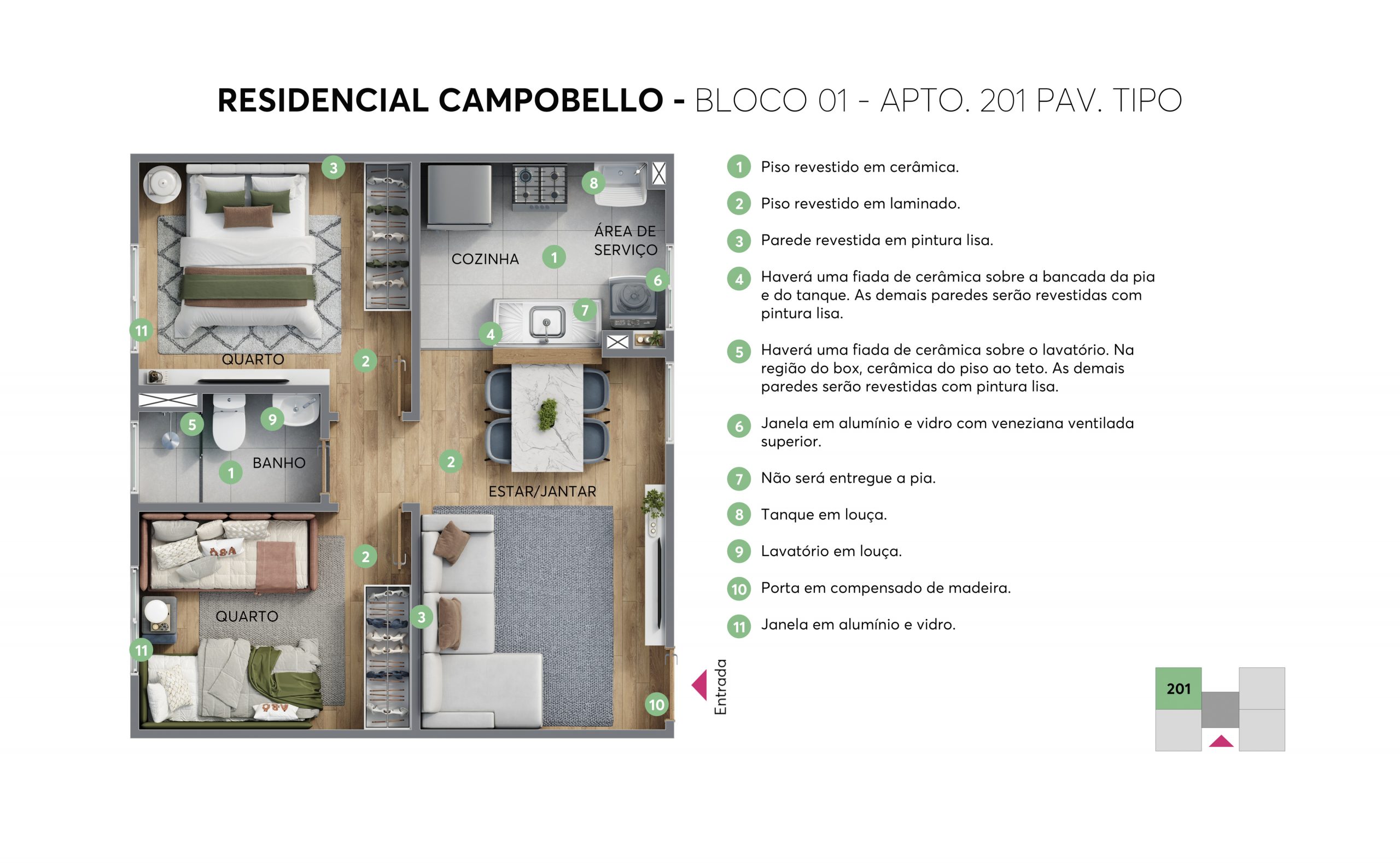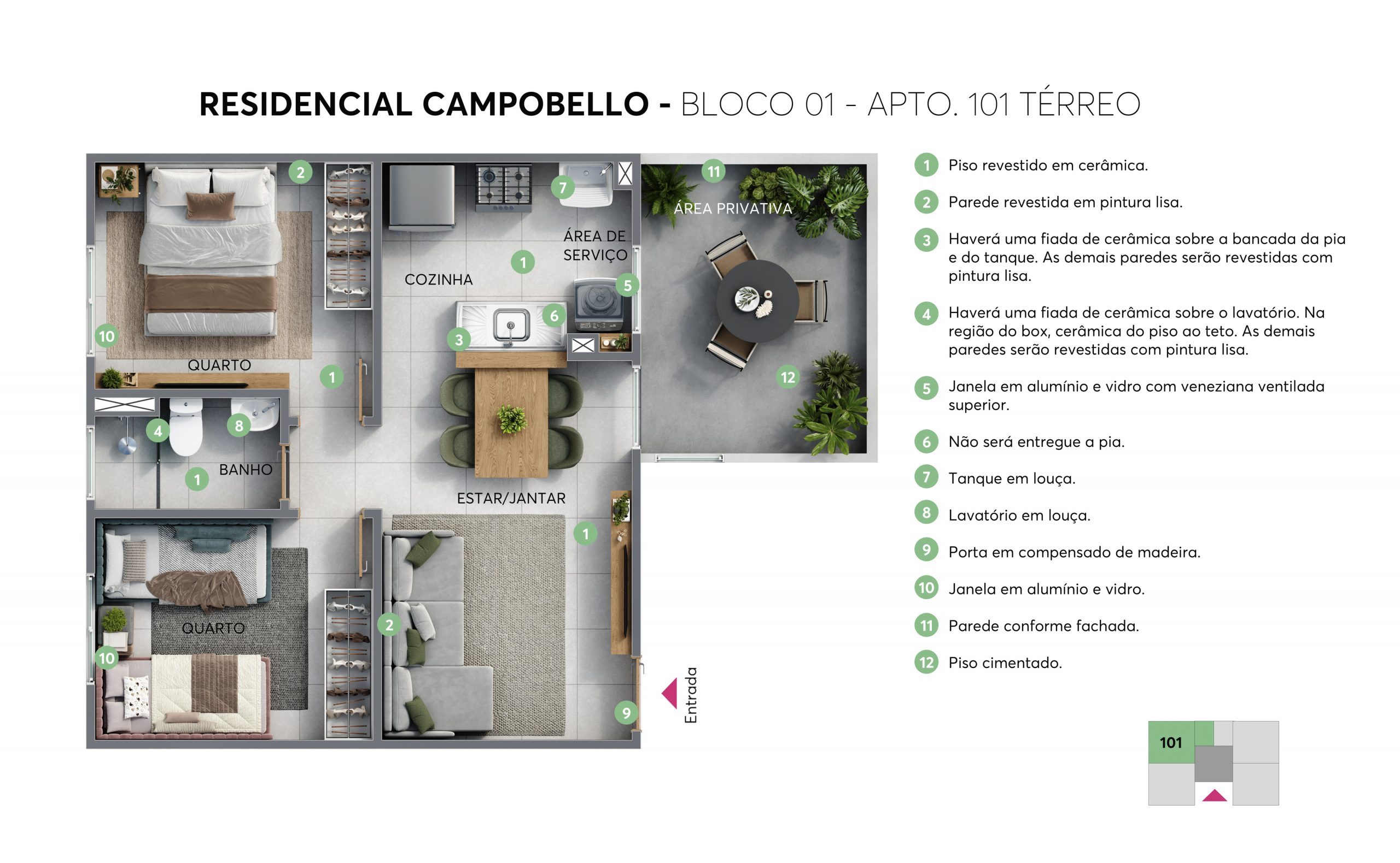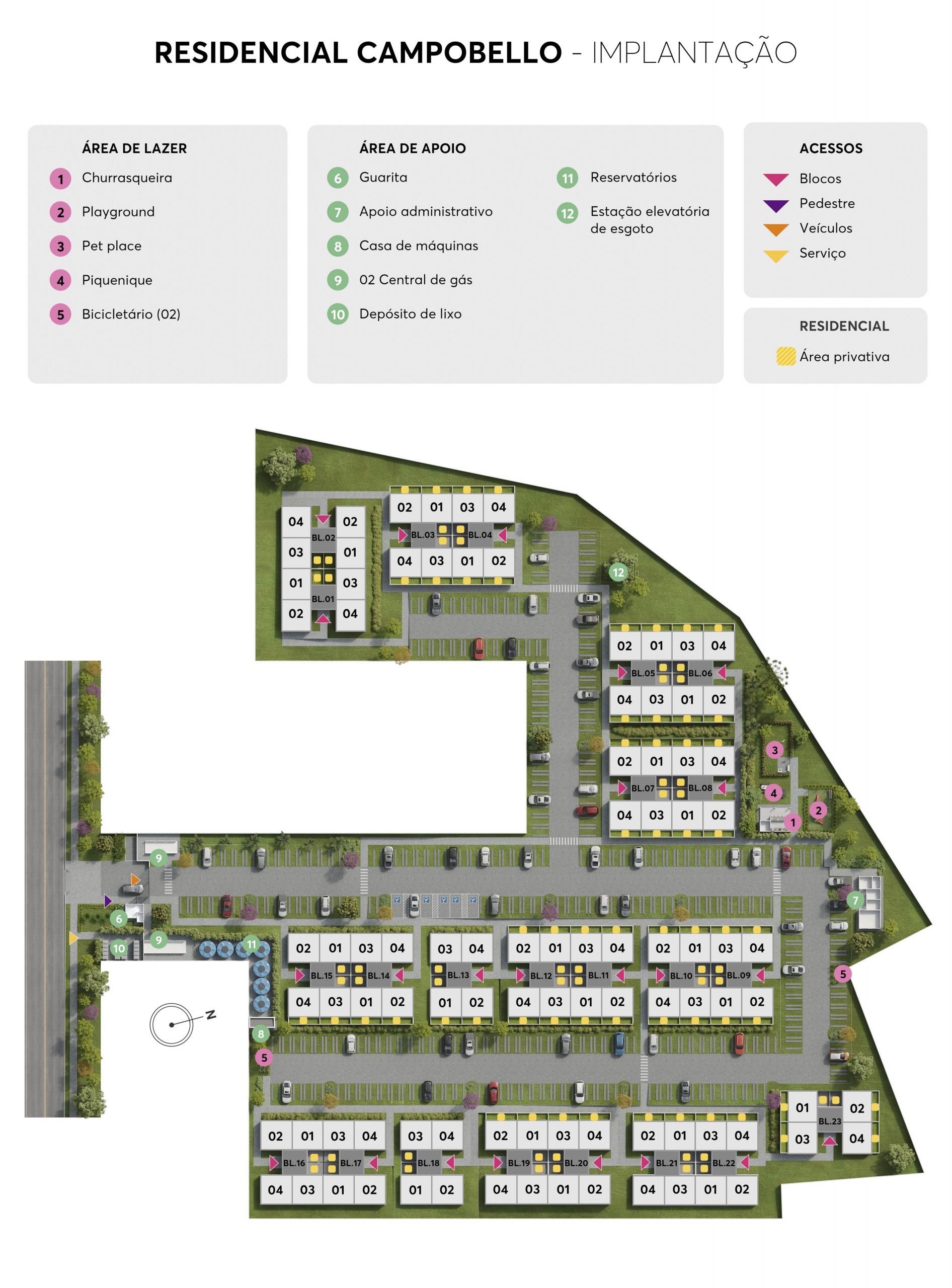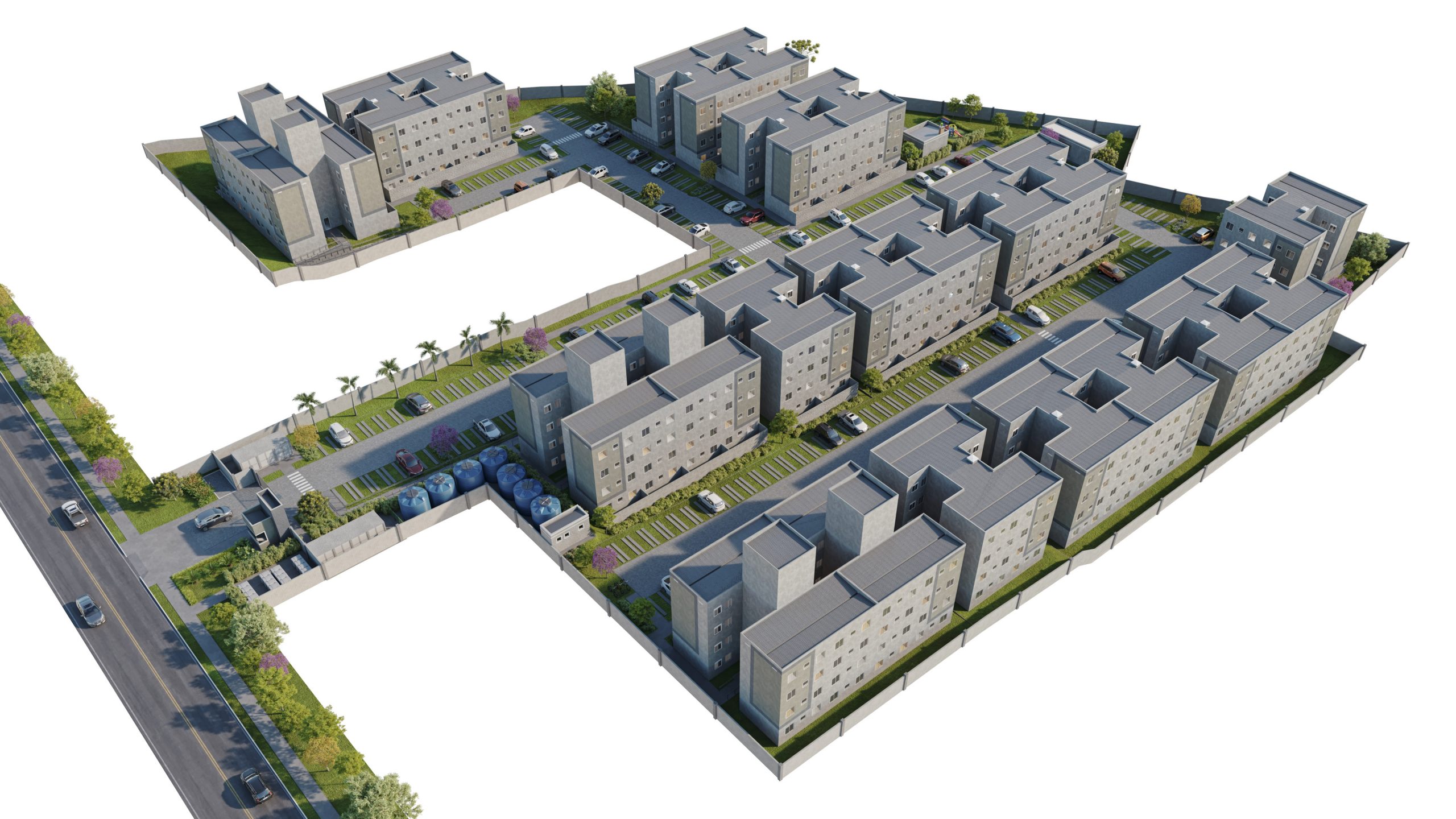 Com 368 apartamentos, divididos em 23 blocos, o Residencial Campobello é um empreendimento fruto de parceria com a construtora MRV.